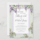 Purple lilac wisteria flowers and green vines arrangements on a soft green and white gingham background. A soft frame of coordinating lilac surrounds the lovely event details. A perfect wedding invitation for any season. Beautiful invitation on the front and all your information, Details, Accommodations, RSVP and QR Code area on the reverse side making this invitation budget friendly. The watercolor cascading wisteria and greenery are just beautiful. Classy & chic.
