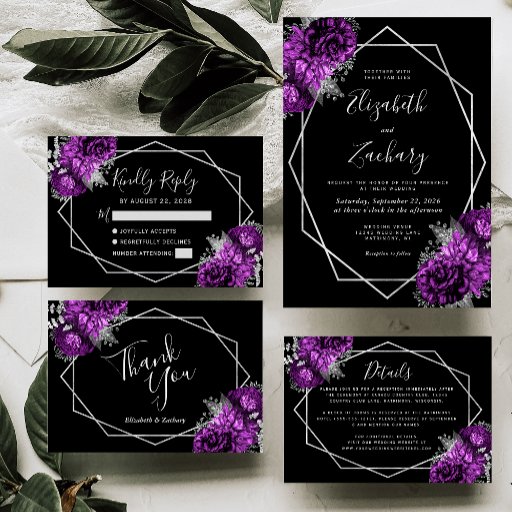 Purple Floral Silver Geometric Black Wedding SuiteDesigned by Akhates Designs