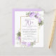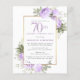 Honour a special woman with this elegant and feminine 70th Birthday party invitation. 70th is written in large purple text. Birthday Surprise Party follows. The honoured guest's name is also in purple capital letters. The remainder of the text is soft dove grey. The 70th birthday celebration details are surrounded by a chic gold frame that is decorated with purple roses and sage green leaves. While it is a traditional design, the open and airy botanical foliage and text give it a contemporary vibe. The invitation back is a soft purple. Unfortunately, the 70 numerals are not editable. If you need another year, I will be happy to make a custom design for you.