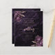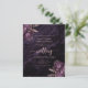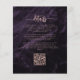 This elegant wedding invitation features purple floral bouquets set off with rose gold faux foil greenery in two corners, on a background image of purple watercolor agate. The customisable rose pink text combines serif, italic and handwriting fonts. The reverse side provides space for wedding details, along with a QR code guests can scan to visit your website and RSVP.