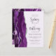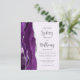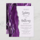 The left-hand edge of this elegant modern wedding invitation features a purple watercolor agate border trimmed with faux silver glitter. The customisable text combines charcoal grey calligraphy script and sans serif font on a pale purple background. The reverse side features a matching purple and silver agate design.