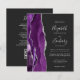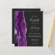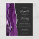 The left-hand edge of this elegant modern wedding invitation features a purple watercolor agate border trimmed with faux silver glitter. The customisable text combines handwriting, copperplate and italic fonts in silver grey on an off-black background. Add additional details on the back, along with a QR code to help your guests visit your wedding website.