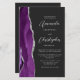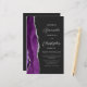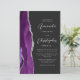 The left-hand edge of this elegant modern wedding invitation features a purple watercolor agate border trimmed with faux silver glitter. The customisable text combines silver grey script and sans serif fonts on an off-black background. The reverse side provides space for wedding details on a solid off-black background, along with a QR code guests can scan to visit your website and RSVP, which saves the cost of printing and mailing separate RSVP cards.