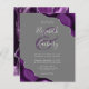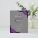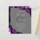 A purple watercolor agate design trimmed with faux silver glitter appears in two corners of this elegant design. Personalise it with the couple's names in silver grey handwriting script over a large purple ampersand. Add the wedding details in copperplate and italic fonts on a grey background. The reverse side features a matching purple and silver agate design.