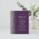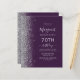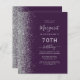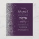 The left-hand edge of this elegant modern birthday party invitation features a silver faux glitter design. The customisable text combines silver grey handwriting, copperplate and italic fonts on a dark purple background. The reverse side features a matching purple and silver glitter design.