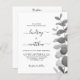 It is decorated with watercolor eucalyptus sprigs in shades of grey.