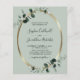 Budget All in One Eucalyptus Gold QR Code Sage Wedding Invitation... The front of our budget "front and back" luxe botanical wedding invitation features a gold metallic oval frame embellished with emerald-hued eucalyptus leaves on a sage green background. The light sage back of the invitation contains all of the details you would typically see on separate cards in the wedding packet. This modern style double-sided wedding invitation was designed to be both elegant and budget conscious... not to mention time-saving. On the back there is also an example QR code graphic you can replace with your own code just by typing in your wedding website URL... right on the Personalisation template. All example text can be easily revised with your own information on the personalisation template. The budget cards do not automatically come with envelopes, as do the traditional invitation cards, but you can purchase them on the same page at checkout if you wish.
