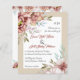 BUDGET terracotta watercolor flowers floral beige fall wedding invitation with QR code to RSVP. It features bouquets of flowers in terracotta brown tones on the corners while your text is placed in a white frame with a beige border. The back includes floral garlands on the upper and bottom parts and the QR code.