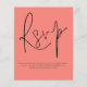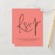 Simple QR Code Script Wedding Coral Rose Pink RSVP. A convenient option enclosure to ask your guests to scan your QR code to your wedding website to RSVP. A budget friendly 4.5” x 5.6” alternative. Available in a SEMI GLOSS 110 lb CARD STOCK or a SATIN FINISH 80 lb THINNER PAPER STOCK. A stylish set typography for the main heading RSVP complementing the rest of the text which you can easily personalise, with QR code on the back. Simply replace with your own.