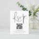 A value for money BUDGET alternative on a smaller size 4.5 x 5.6” semi-gloss 110lbs weight, which is of similar thickness to a postcard (however is not suitable to use as a postcard.). PLEASE NOTE there is ONE invite per sheet . QR Code Script Wedding RSVP. A convenient option enclosure to ask your guests to scan your QR code to your wedding website to RSVP. A stylish set typography in black for the main heading RSVP complementing the rest of the text which you can easily personalise.