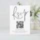 QR Code Script Wedding RSVP. A convenient option enclosure to ask your guests to scan your QR code to your wedding website to RSVP. A stylish set typography in black for the main heading RSVP complementing the rest of the text which you can easily personalise.