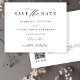 Minimalist classy formal calligraphy script modern BUDGET wedding save the date card with scanning QR CODE to website. +++++++++++ Suitable for any season and theme. ++++++++++ Easy to personalise with your text! +++++++++ PLEASE READ THIS BEFORE PURCHASING! This is a budget affordable wedding card printed on a paper sheet (each sheet has one card). ++++ For the best rapport price-quality, our advice is to choose the Semi-Gloss paper type (it is thick enough to be used for stationery) ++++ If you need envelopes, choose the ENVELOPE OPTION. +++ Double-check all the information and spelling of your text because you will receive exactly what you see - no one else will check anything before printing. ++++ This card is designed for size 4.5" x 5.6". In the case you choose another size of the card and text goes outside page, everything needs to be fixed before adding the product to cart. Please ask Live Design Service for help.