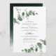 Eucalyptus Greenery foliage watercolor modern minimal elegant contemporary garden party Wedding invitation. Simple contemporary botanical design. Sage green, navy blue, black and white elegant modern colorway suits spring, summer fall, autumn and whiter wedding ceremonies. With space on the back for a QR code to link to website information.