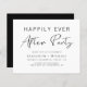 Budget-friendly minimal and chic black and white wedding after party invitation for a post elopement or wedding celebration. "Happily Ever After Party" is written in a mix of simple typography and an elegant modern script. On the back, input your wedding website address to create a QR code that your guests can scan to RSVP online and obtain additional details such as directions and accommodations.