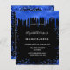 A girly and trendy Quinceañera, 15th birthday party invitation. On front: A chic black background. Decorated with royal blue faux glitter drips, paint dripping look. Personalise and add a name and party details. The name is written with a hand lettered style script.