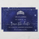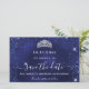 A girly and trendy Save the Date card for a Quinceañera, 15th birthday party. A blue uneven coloured background. Decorated with faux glitter dust and a tiara, crown. The text: Save the Date is written with a large trendy hand lettered style script.