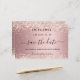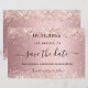 A Save the Date card for a Quinceañera, 15th birthday party. A blush pink metallic looking background decorated with rose gold faux glitter dust. Personalise and add a date and name/age. The text: Save the Date is written with a large trendy hand lettered style script with swashes.