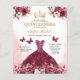 Celebrate your special day with the Floral Burgundy Butterfly Princess Quinceañera Invitation. This elegant design features rich burgundy hues adorned with delicate floral and butterfly accents, symbolising beauty and transformation. Perfect for a princess-themed quinceañera, the invitation captures the essence of grace and sophistication. The intricate details and vibrant colours set the tone for an unforgettable celebration, inviting your guests to join in this once-in-a-lifetime event. Make your quinceañera magical with this stunning, timeless invitation that reflects your style and charm.
