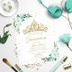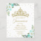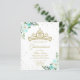 Elegant gold tiara teal floral affordable quinceanera party 4.5”x5.6” invitations. PLEASE NOTE: The envelopes are NOT INCLUDE; matching A7 envelopes are available to be purchase separately.