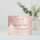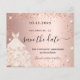 A girly and trendy Save the Date card for a Quinceañera, 15th birthday party. A stylish rose gold background decorated with faux sparkles and a dress. Personalise and add a date and name/age. The text: Save the Date is written with a large trendy hand lettered style script.