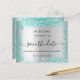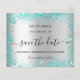 A girly and trendy Save the Date card for a Quinceañera, 15th birthday party. A faux silver looking background decorated with teal, green faux glitter dust. Personalise and add a date and name/age. The text: Save the Date is written with a large trendy hand lettered style script.