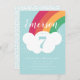 A simple, modern children's birthday party invitation featuring arching rainbow and cloud with large a name and editable age. Perfect for the savvy party planner. Build your entire theme around this unique invite. Perfect for kids of all ages. Look for coordinating party accessories and additional colour variations by Stacey Meacham.