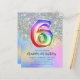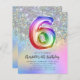 Glam Holographic Rainbow Glitter Foil Pastel Balloon Girl Boy 6th Birthday Invitation