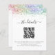 A value for money BUDGET alternative on a size 4.5 x 5.6” semi-gloss 110lbs weight, which is of similar thickness to a postcard (however is not suitable to use as a postcard.). PLEASE NOTE there is ONE invite per sheet. Budget Rainbow Glitter QR Code Wedding Details. A multicolor faux glitter border at the top on both sides with an elegant script with swashes for the header. Swap in your QR code to your wedding website for a convenient way for your guests to see all the details they need. To create a QR code, search online "generate a QR code"