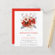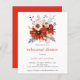 Red Florals Rehearsal Dinner Invitation. A budget price SMALLER 4.5” x 5.6” alternative. Available in a SEMI-GLOSS 110 lb CARD STOCK which is the default option (thicker for invitations), OR a SATIN FINISH 80 lb THINNER PAPER STOCK (ideal for enclosures). Envelopes are an optional extra and are slightly larger than the card size. A bouquet of beautiful red and cream watercolor florals and foliage is at the top and stylish typography is below which is easily personalised to the details of your Rehearsal Dinner. A coordinating coloured background is on the back.