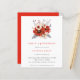 Red Cream Florals Wedding Evening Party Invite. A budget price SMALLER 4.5” x 5.6” alternative. Available in a SEMI GLOSS 110 lb CARD STOCK which is the default option (recommended for invitations), OR a SATIN FINISH 80 lb THINNER PAPER STOCK (ideal for enclosures). Envelopes are an optional extra and are slightly larger than the card size.. A bouquet of festive coloured florals is at the top followed by the text which you can easily personalise. A coordinating red is on the back which you can change if you wish via the customise further option.