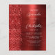 The left-hand edge of this elegant modern wedding invitation features a red faux glitter border. The customisable text combines white handwriting, copperplate and italic fonts on a red faux brushed metal background. The reverse side provides space for wedding details on a red brushed metal background, along with a QR code guests can scan to visit your website and RSVP, which saves the cost of printing and mailing separate RSVP cards.