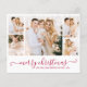 Budget Elegant Calligraphy Script Simple Red and White 5 Photo Collage Multi Photo Christmas Paper Flyer. This festive, minimalist, five (5) photo holiday card features a pretty photo collage and says „Merry Christmas”! The „Merry Christmas” greeting text is written in a hand lettered swirly swash-tail font type. On the reverse side hand drawn pine tree doodle pattern. Pretty greeting card for your family and friends in Winter Holiday season.