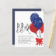A value for money BUDGET alternative on a smaller size 4.5 x 5.6” semi-gloss 110lbs weight, which is of similar thickness to a postcard (however is not suitable to use as a postcard.). PLEASE NOTE there is ONE invite per sheet. Budget Red White Blue Balloons July 4 BBQ Invite. A bunch of Balloons are to the right and BBQ is set in a modern handwriting style. Easily personalise the rest of the text to your own.