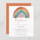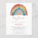 PLEASE NOTE There are two paper options to choose from for this size (4.5 x 5.6”) in the Budget range. For this product, I would highly recommend the semi-gloss which is a 110 gsm card stock, similar in thickness to a postcard. The Satin option is a much thinner paper 80gsm. The default is set to semi-gloss. Budget Retro Boho Rainbow Bohemian Baby Shower. A stylish informal set script for header Baby Shower. You can easily personalise the rest of the text to your own requirements and change the text and background colours if you wish via the edit further option.