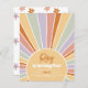 Retro-inspired birthday party invitations with a hippie-style sun, colourful daisies, and groovy fonts. The front of this budget card features a hand-drawn sun with rays of sunshine in different pastel rainbow colours. Inside the centre of the sun, the birthday girl's name is written in a chic handwriting script. Her age appears underneath in bold groovy typography. The cards reverse to a cute pattern of colourful daisy flowers. Perfect for any age girl. For boho events, retro 60s or 70s themes, hippie styles, spring birthdays, pool parties, summer fun, sun-themed celebrations, and more! This invitation template is editable online, simply click on "Personalise this template" to get started. For more advanced edits, select "click to customise further" to access Zazzle's Design Tool. As part of the budget selection on Zazzle, this sheet isn't a standard invite size or paper quality. If you want this design on an invitation card you can find it in our store or use the Zazzle Make Machine to transfer it onto the product of your choice. Please note the cards are printed as you see them on your screen when ordering, so be sure to double-check for typos! A photo version of this design is available in the collection linked on this page. Browse my store for more sunshine birthday party invitations.