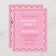 Budget Retro Squiggle Wavy Curve Pink Red Photo Wedding Invitation