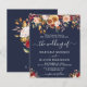 Budget romantic fall floral navy blue wedding invitations. Customise names, dates, and information.