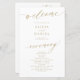 Modern simple minimalist faux gold script trendy clean white ceremony and party BUDGET affordable wedding program template featuring chic trendy romantic elegant calligraphy. ++++++++++++ Easy to personalise with your custom text on both sides!