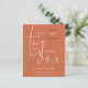 Budget Romantic Quote Terracotta Wedding Save Date. A romantic quote And The Two Shall Become One is in a set stylish typography with your names to the right and wedding date at the bottom which you can easily personalise. You can also change background colours on both sides to match your wedding colour theme if you wish via the Customise Further option as well as other edits. If you need any help please message me.
