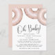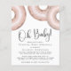This cute and budget-friendly gender-neutral baby sprinkle invitation features sparkly pastel rose gold doughnuts with faux glitter and silver rhinestone accents and "Oh Baby!" in a stylish script. You can easily personalise with the online event details.