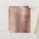 The left-hand edge of this elegant modern wedding invitation features a rose gold faux glitter border. The customisable text combines white handwriting, copperplate and italic fonts on a rose gold faux brushed metal background. The reverse side provides space for wedding details on a rose gold brushed metal background, along with a QR code guests can scan to visit your website and RSVP, which saves the cost of printing and mailing separate RSVP cards.