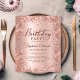 Modern Budget elegant rose gold metallic and glitter 90th birthday party invitations. This adult girly card design features stylish handwritten calligraphy script, blush pink or rose gold faux brushed metallic background with loose glam glitter frame around. Easy to personalise, perfect for any age.
