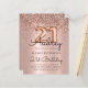 Budget Elegant Modern Sparkle Glitter Rose Gold Metallic Balloon 21st Birthday Invitation. This Feminine Girly Adult Birhday party invitation feature elegant hand lettered calligraphy script and cute fun rose gold foil number balloons on metallic foil look blush pink background. Ideal for a (twenty one) 21-year-old woman's birthday celebration, this invitation perfectly captures the essence of a modern rose gold and blush pink glitter sparkle girly birthday party. Cheap affordable birthday invitations.