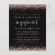 A value for money BUDGET alternative on a smaller size 4.5 x 5.6” semi-gloss 110lbs weight, which is of similar thickness to a postcard (however is not suitable to use as a postcard.). PLEASE NOTE there is ONE invite per sheet. Rose Gold Glitter Borders Photo Engagement Black Invitation. Elegant rose gold faux glitter borders are at the top and bottom on the front with a classic black background and upload your favourite photo of you both on the back to replace the sample image shown. Engagement is set in an informal handwriting style and the rest of the text you can easily personalise.