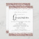 A value for money BUDGET alternative on a smaller size 4.5 x 5.6” semi-gloss 110lbs weight, which is of similar thickness to a postcard (however is not suitable to use as a postcard.). PLEASE NOTE there is ONE invite per sheet. Rose Gold Glitter Border Quinceañera Invitation. Elegant Rose gold faux glitter confetti borders are at the top and bottom and also on the back. Quinceañera is set in a modern handwriting style. Easily personalise the rest of the text to your own.