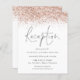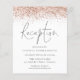 A value for money BUDGET alternative on a smaller size 4.5 x 5.6” semi-gloss 110lbs weight, which is of similar thickness to a postcard (however is not suitable to use as a postcard.). PLEASE NOTE there is ONE per sheet. Budget Rose Gold Glitter Wedding Reception Enclosure. A modern set script for the heading and the rest of the text you can easily personalise, wth faux glitter borders at the top on each side in rose gold.