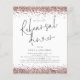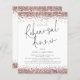 A value for money BUDGET alternative on a smaller size 4.5 x 5.6” semi-gloss 110lbs weight, which is of similar thickness to a postcard (however is not suitable to use as a postcard.). PLEASE NOTE there is ONE invite per sheet. Budget Rose Gold Glitter Wedding Rehearsal Dinner invitation. This modern design has elegant informal set script for Rehearsal Dinner and the rest of the typography you can easily personalise. Faux glitter in rose gold borders the top and bottom on both sides.