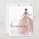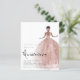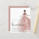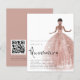 Budget Rose Gold Gown Dark Hair QR Quinceañera Invitation. A budget price SMALLER 4.5” x 5.6” alternative. Available in a SEMI GLOSS 110 lb CARD STOCK which is the default option (recommended for invitations), OR a SATIN FINISH 80 lb THINNER PAPER STOCK (ideal for enclosures). This version of this invitation is with parties in mind taking place in a hotel or restaurant (or any venue with a website), replace the QR code on the back with a QR code to their website. You can create QR codes for free online. Or simply search “QR code creator” and lots of options come up to create for free. You can also delate the QR code and text on the back if not required via customise further. Elegant style for your 15th birthday party invitations with the backview of a dark haired girl in a beautiful rose gold dress to the right, and Quinceañera in a set handwritten style script. Easily personalise the rest of the text to your own details. A coordinating rose gold background is on the other side which can be changed to another colour if you wish via customise further, as can the colour of the text.