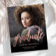 Modern graduation announcement featuring a custom vertical photo. The word "graduate" appears in rose gold faux foil script, with the graduate's name, school, and year of graduation below in rose pink sans serif font. Easily replace the sample image with your own graduate's photo. A black gradient screen helps ensure the text pops. The reverse features a glamourous rose gold faux foil polka dot pattern. Ideal for high school or college graduation.