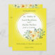 Roses and leaves with golden circular frame on the yellow background,on the back you can write additional informations for your guests